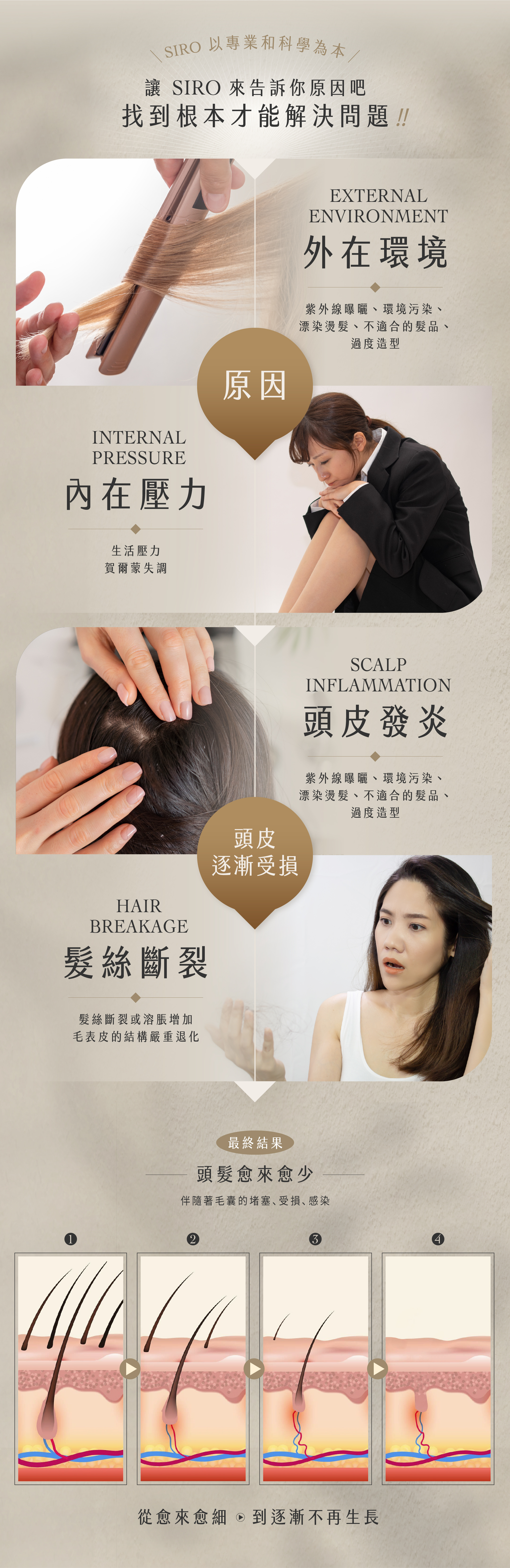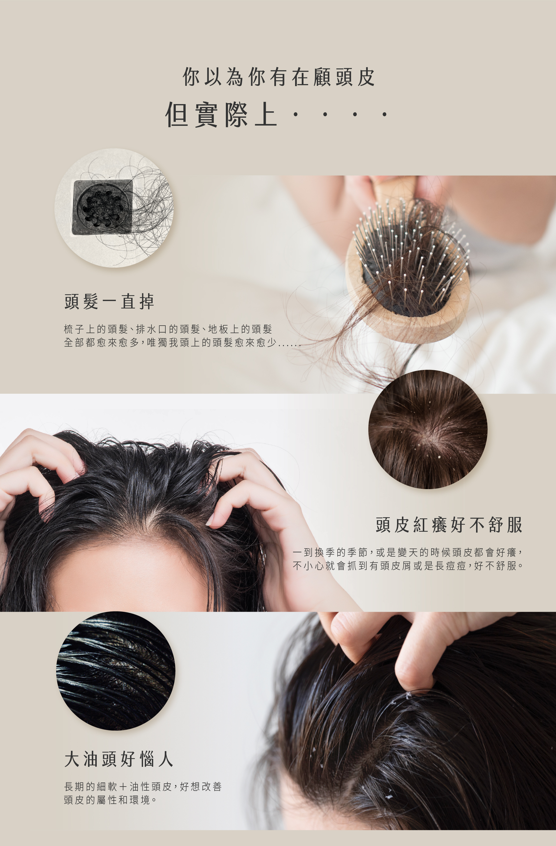 細軟髮扁塌稀疏 | 易落髮 | 頭皮搔癢出油 |