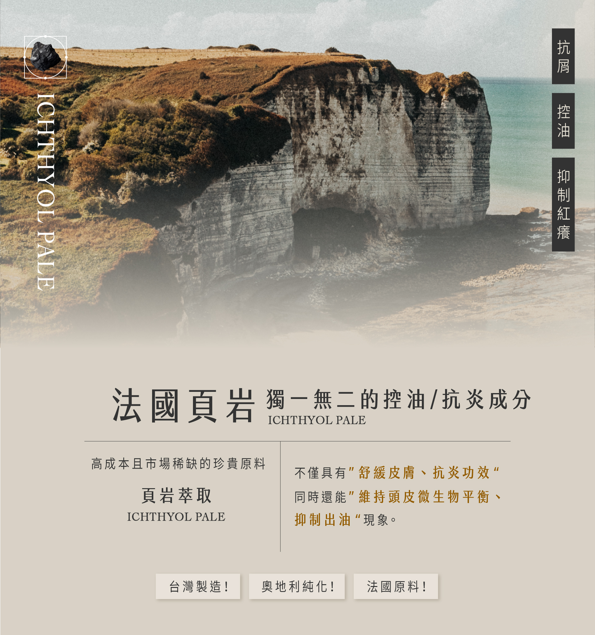 • 天然Ictasol生物硫,舒緩出油改善搔癢,降低頭皮發炎機率