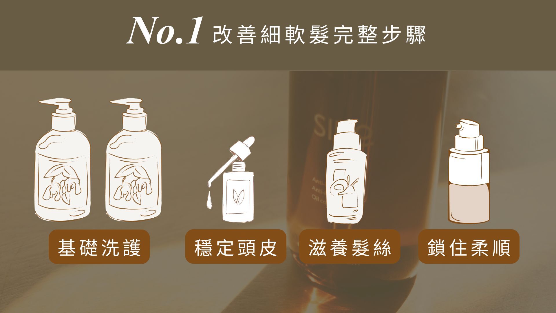 No.1號系列是一個「從清潔、強健到保護」的系列設計,穩定頭皮環境,降低拉扯與摩擦,幫細軟髮保留支撐力。