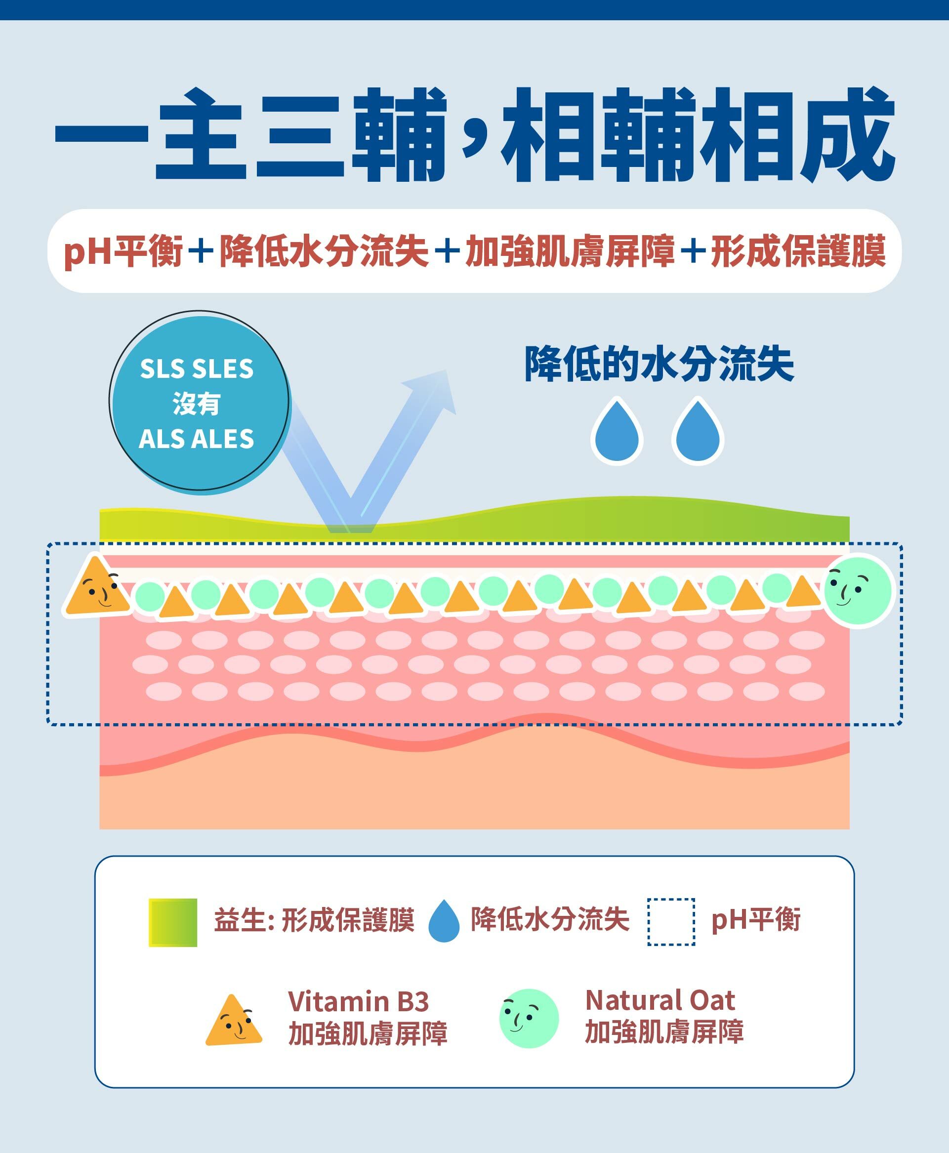 的二合一沐浴露,加強肌膚屏障並使用燕麥紓緩肌膚,不含硫酸鹽SLES/SLS
