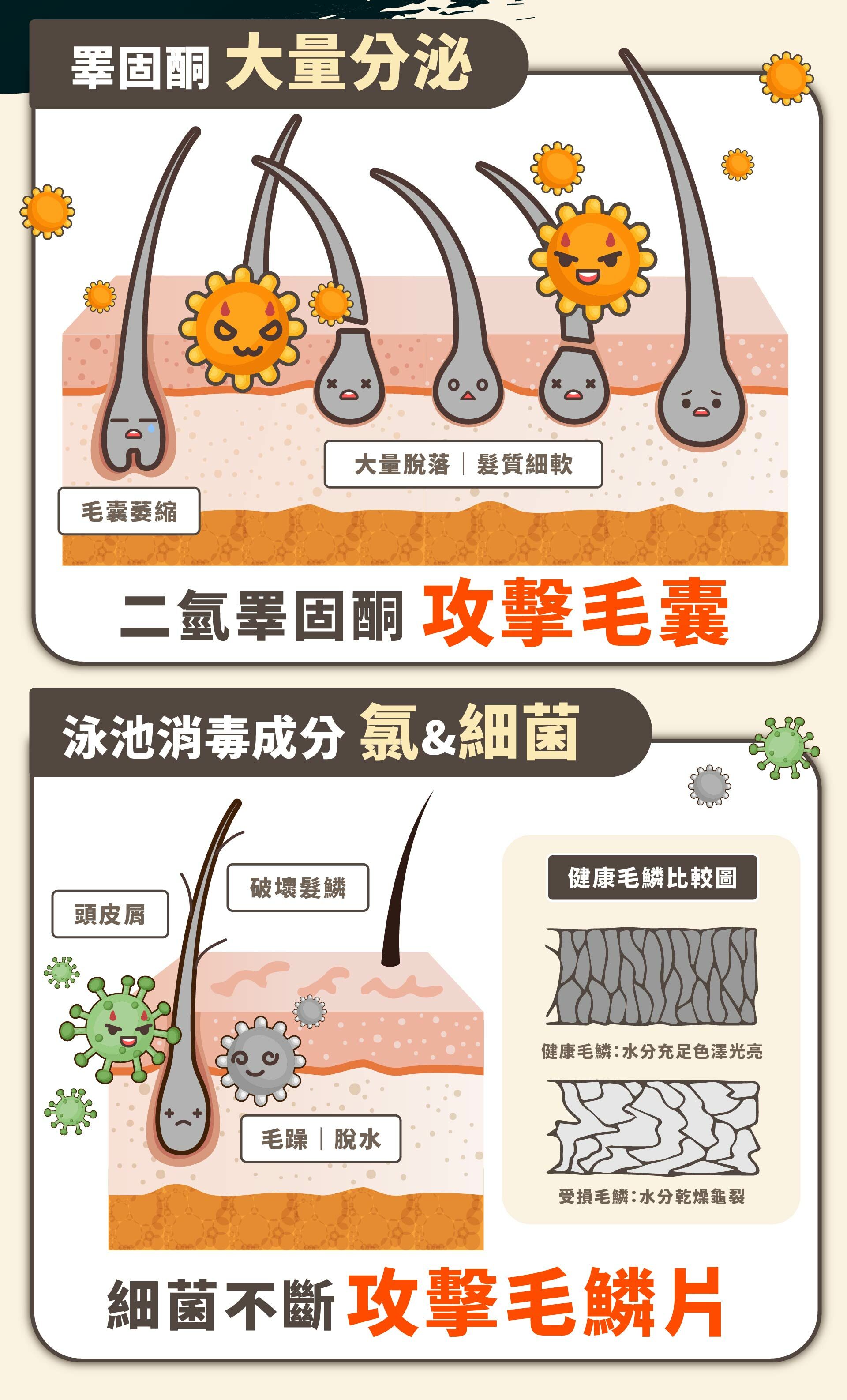 專為游泳健身後的頭髮困擾而生。