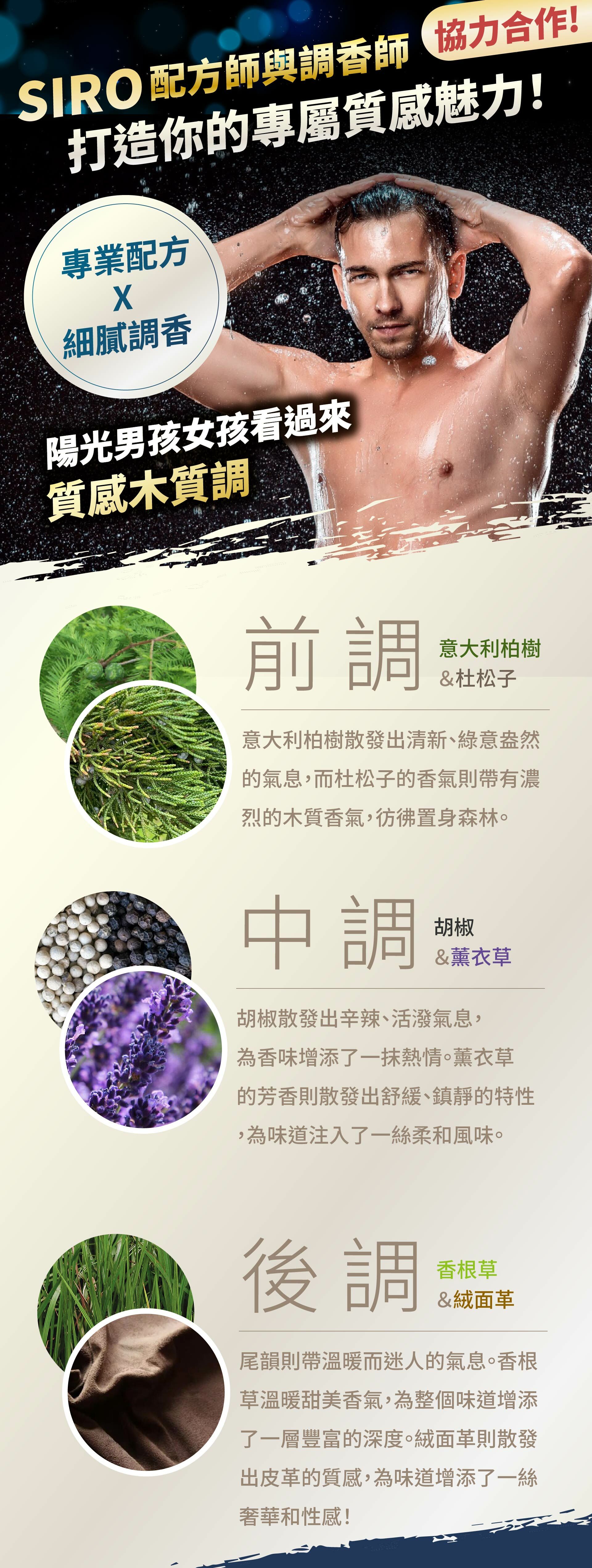 有效去除氯氣、鹽類和礦物質,雙倍減緩落髮,抗菌溫和,乾爽蓬鬆,高級木質香調